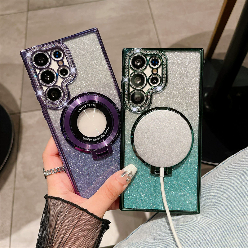7分鐘前【今日促銷!買一送一!】適用Samsung系列 · 電鍍閃粉水鑽磁吸支架手機殼 - 體驗價【僅1組】= NT$930