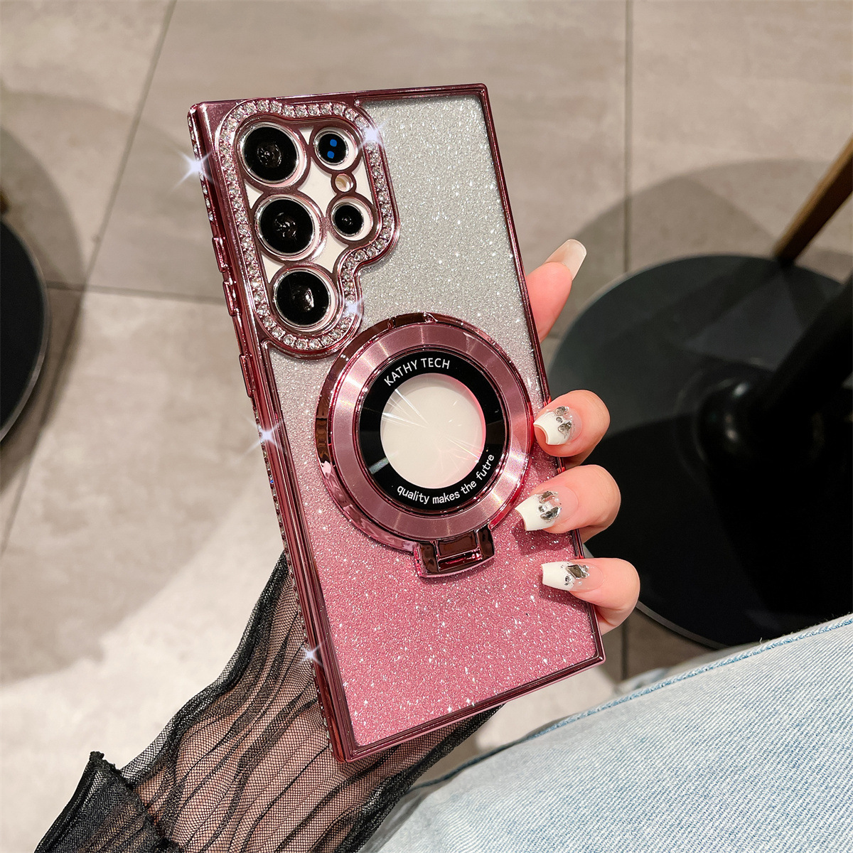 半小時前【今日促銷!買一送一!】適用Samsung系列 · 電鍍閃粉水鑽磁吸支架手機殼 - 體驗價【僅1組】= NT$930