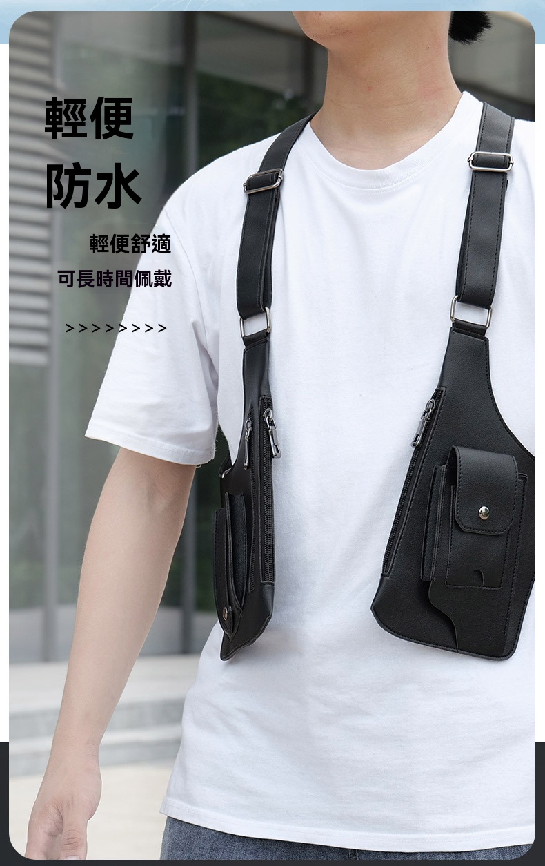 20分鐘前戰術復古 - 多功能皮革防盜馬甲背帶腋下挎包(帶拉鏈) - 3入組=NT$1999