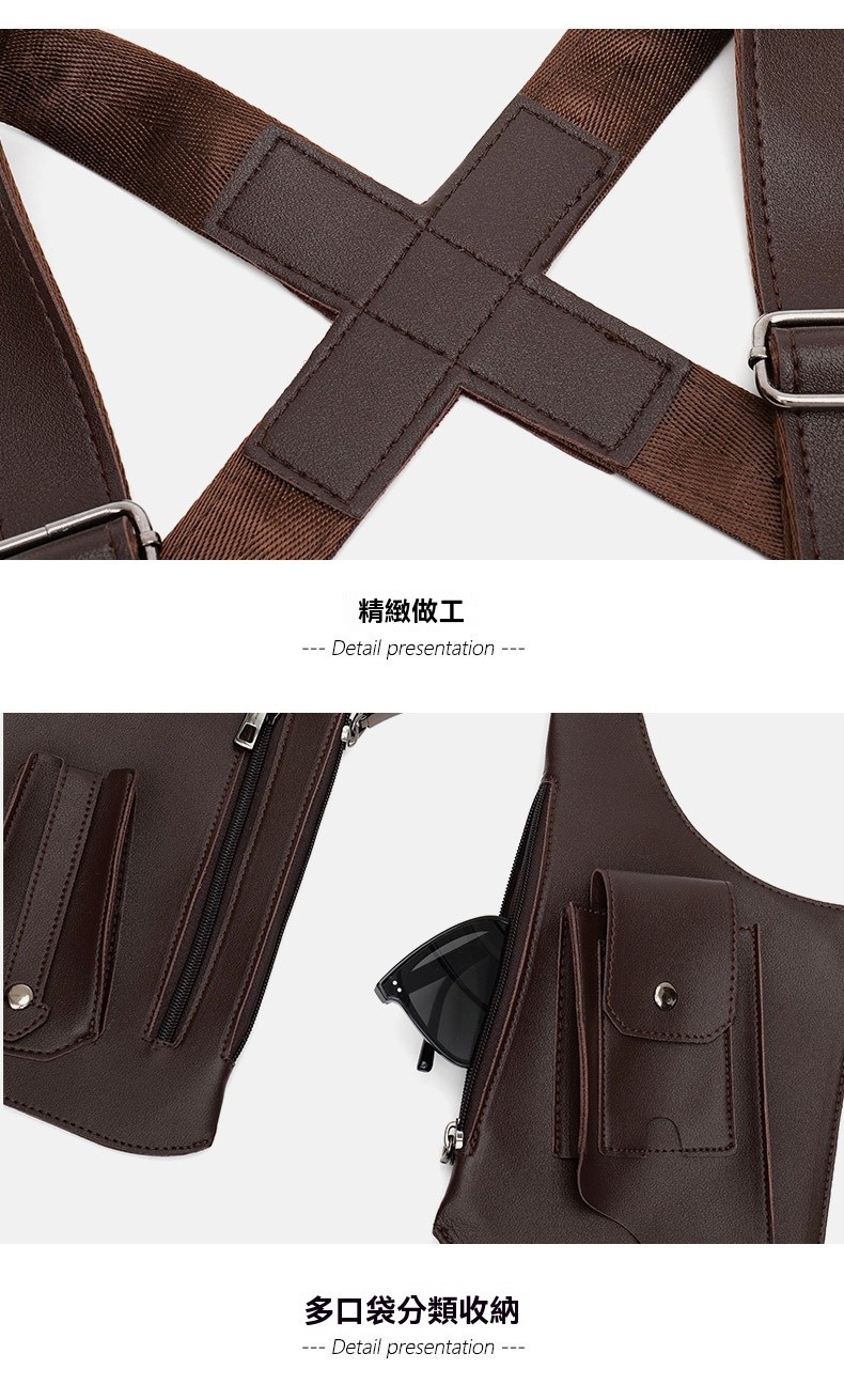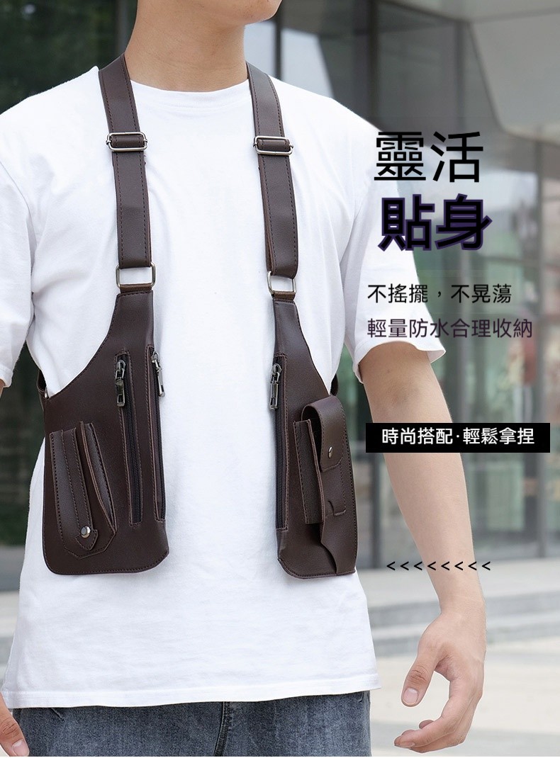 20分鐘前戰術復古 - 多功能皮革防盜馬甲背帶腋下挎包(帶拉鏈) - 1入組=NT$1069