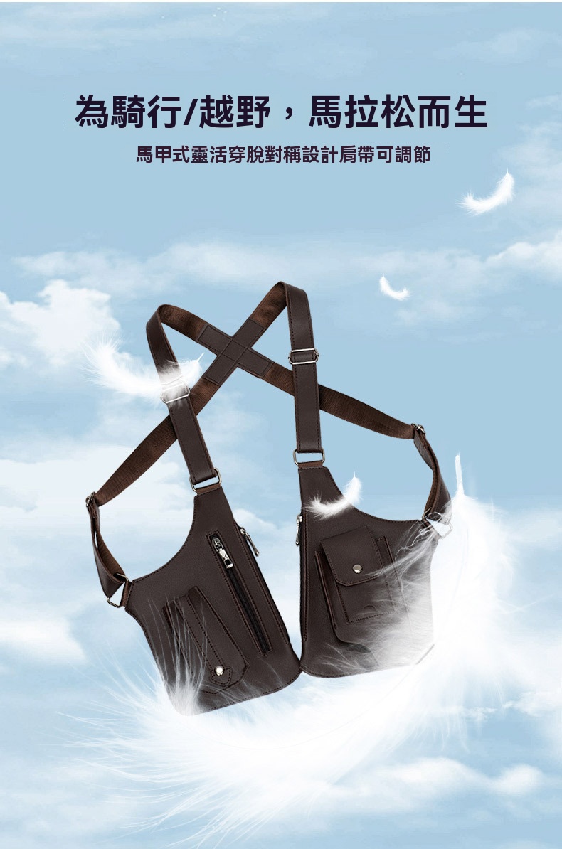 半小時前戰術復古 - 多功能皮革防盜馬甲背帶腋下挎包(帶拉鏈) - 1入組=NT$1069