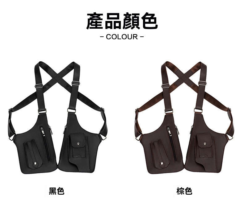 半小時前戰術復古 - 多功能皮革防盜馬甲背帶腋下挎包(帶拉鏈) - 2入組=NT$1499