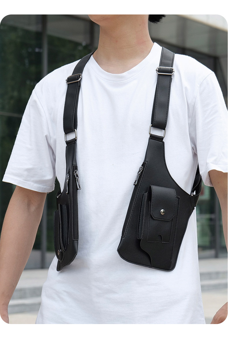 2分鐘前戰術復古 - 多功能皮革防盜馬甲背帶腋下挎包(帶拉鏈) - 2入組=NT$1499