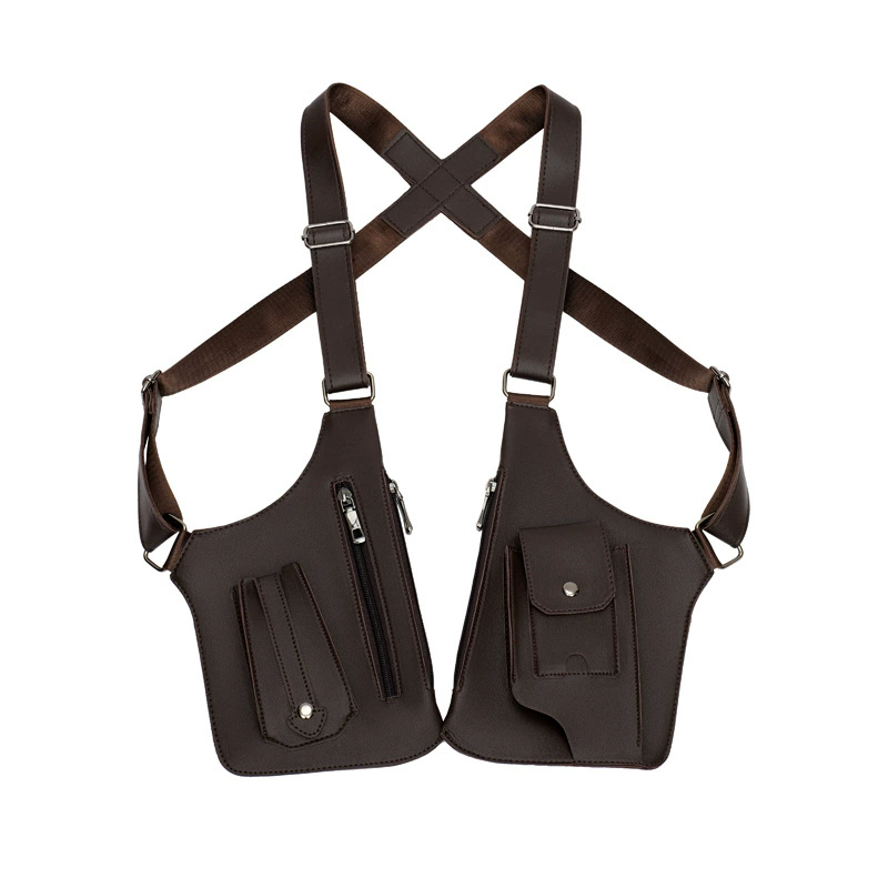 2分鐘前戰術復古 - 多功能皮革防盜馬甲背帶腋下挎包(帶拉鏈) - 1入組=NT$1069